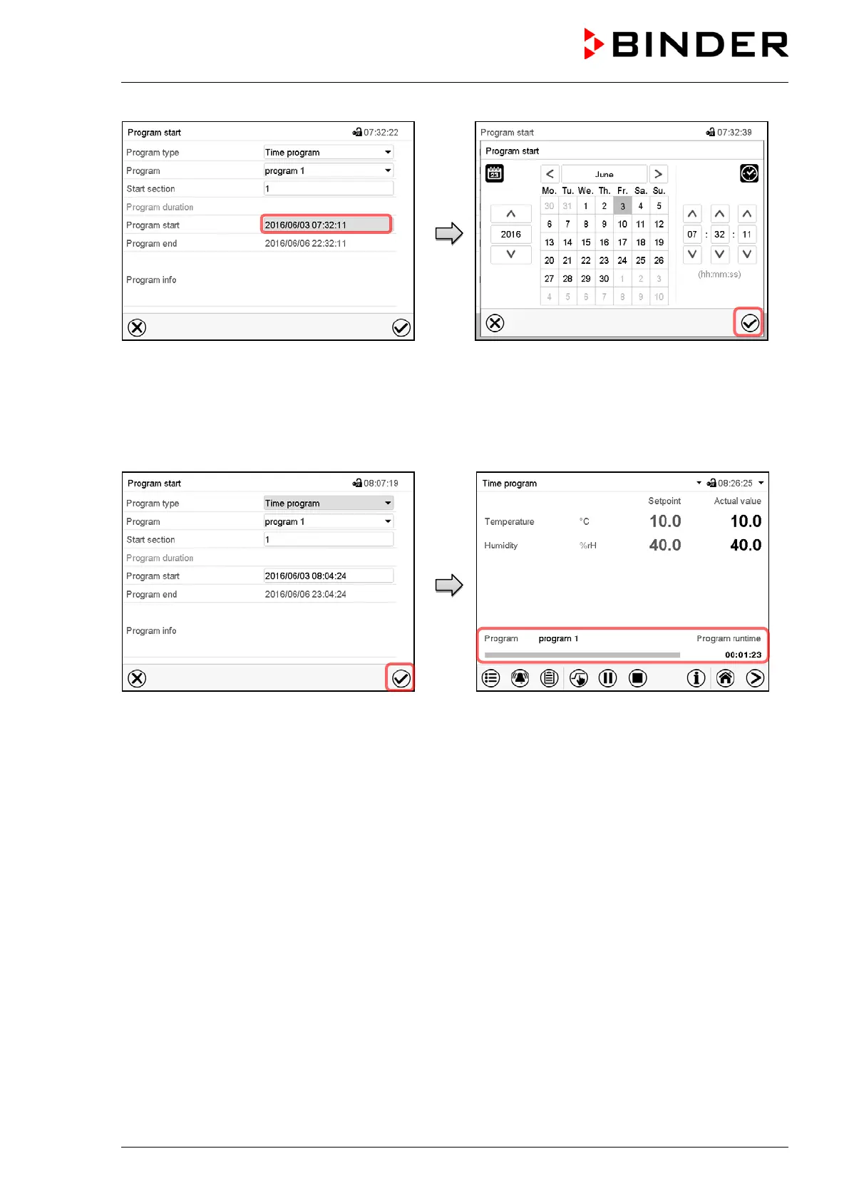 Enter the desired program start time and press the
