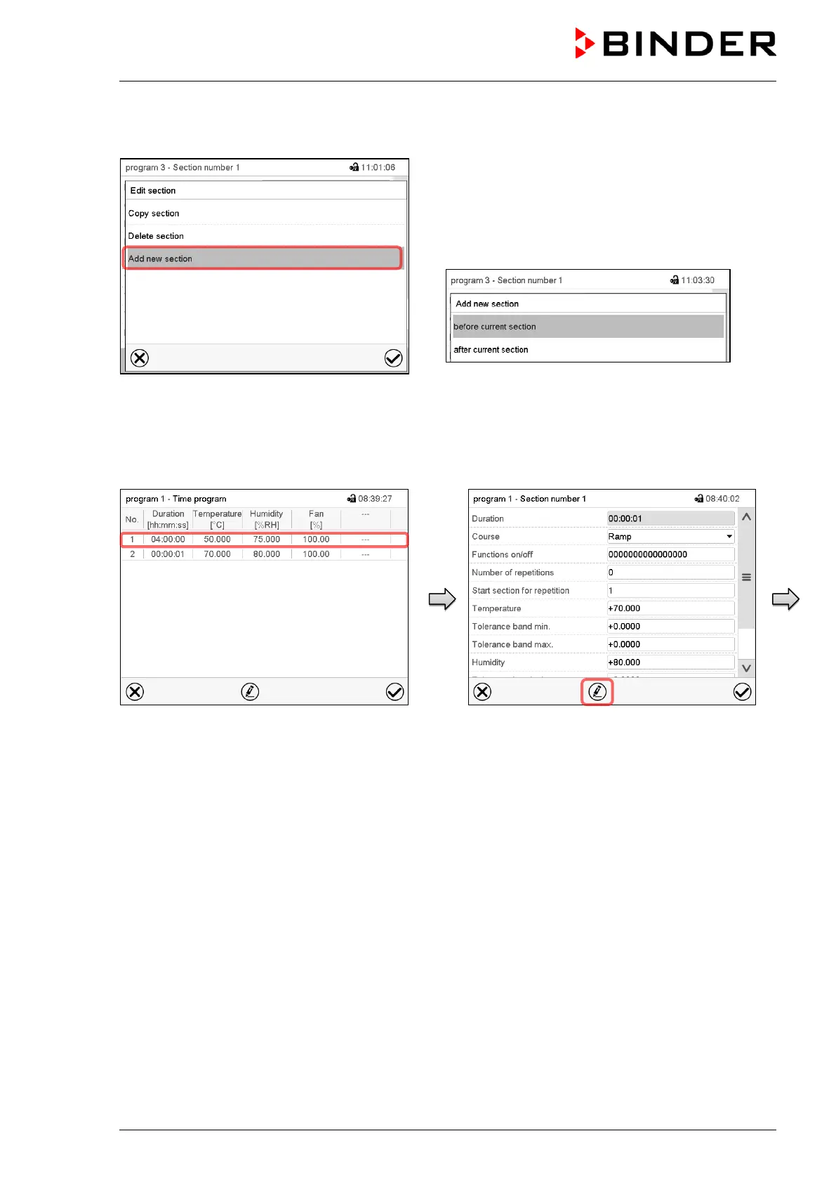 Press the Confirm icon. The new section opens.