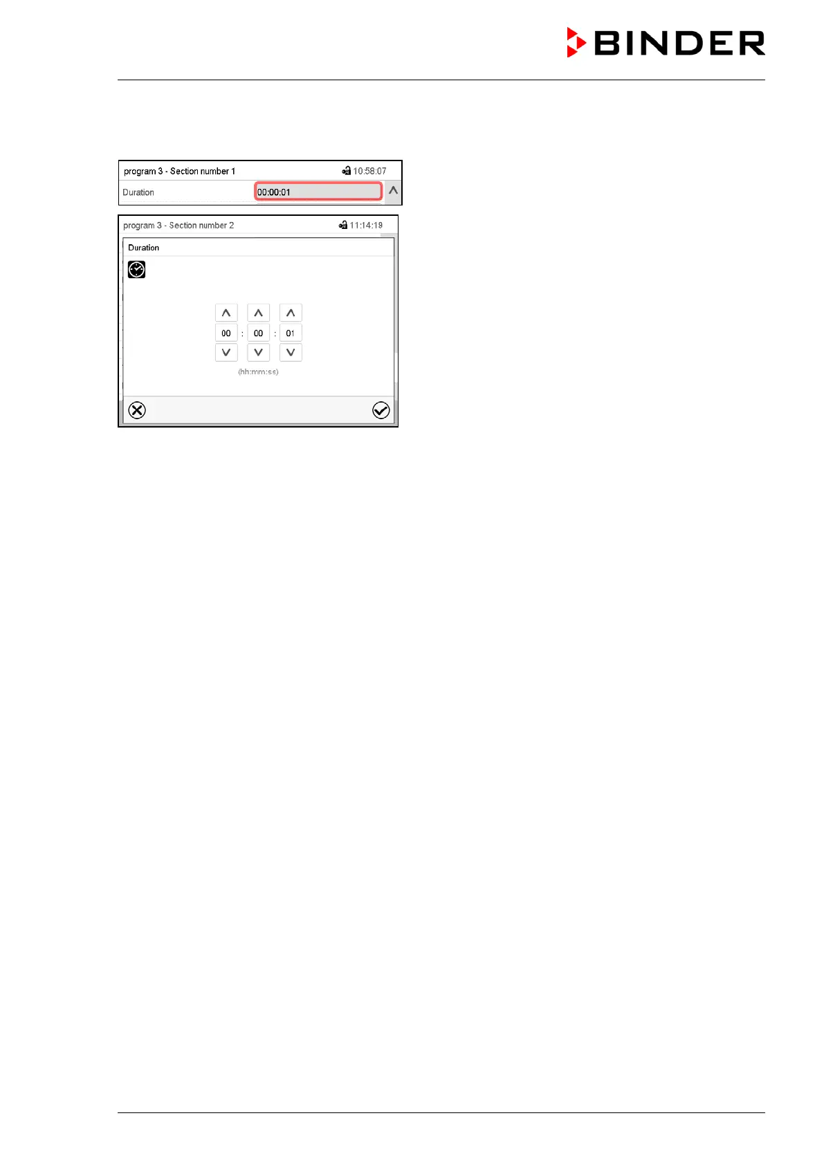 Enter the desired section duration with the arrow keys