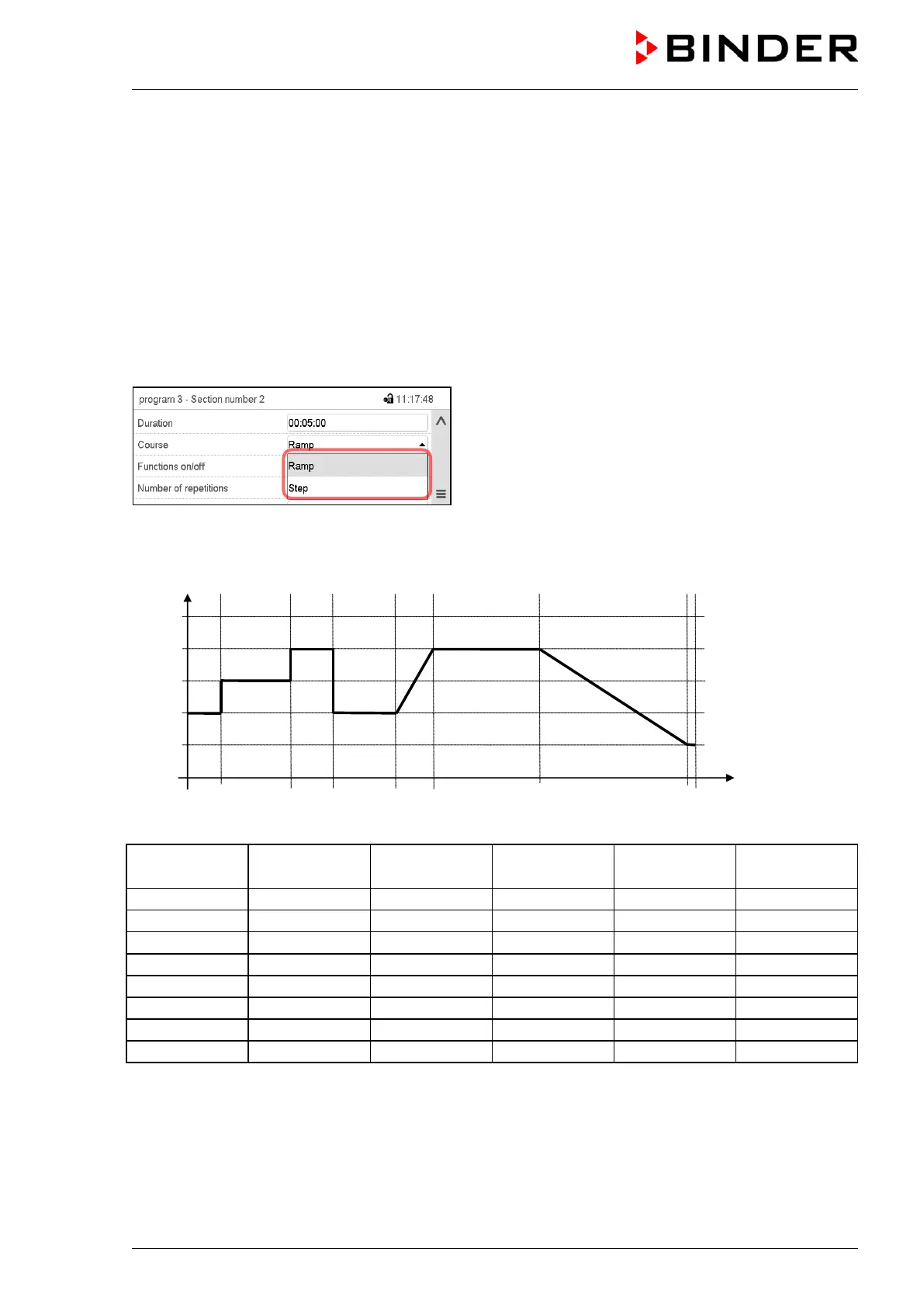 “Ramp” and “Step” mode example (representation of a temperature course)