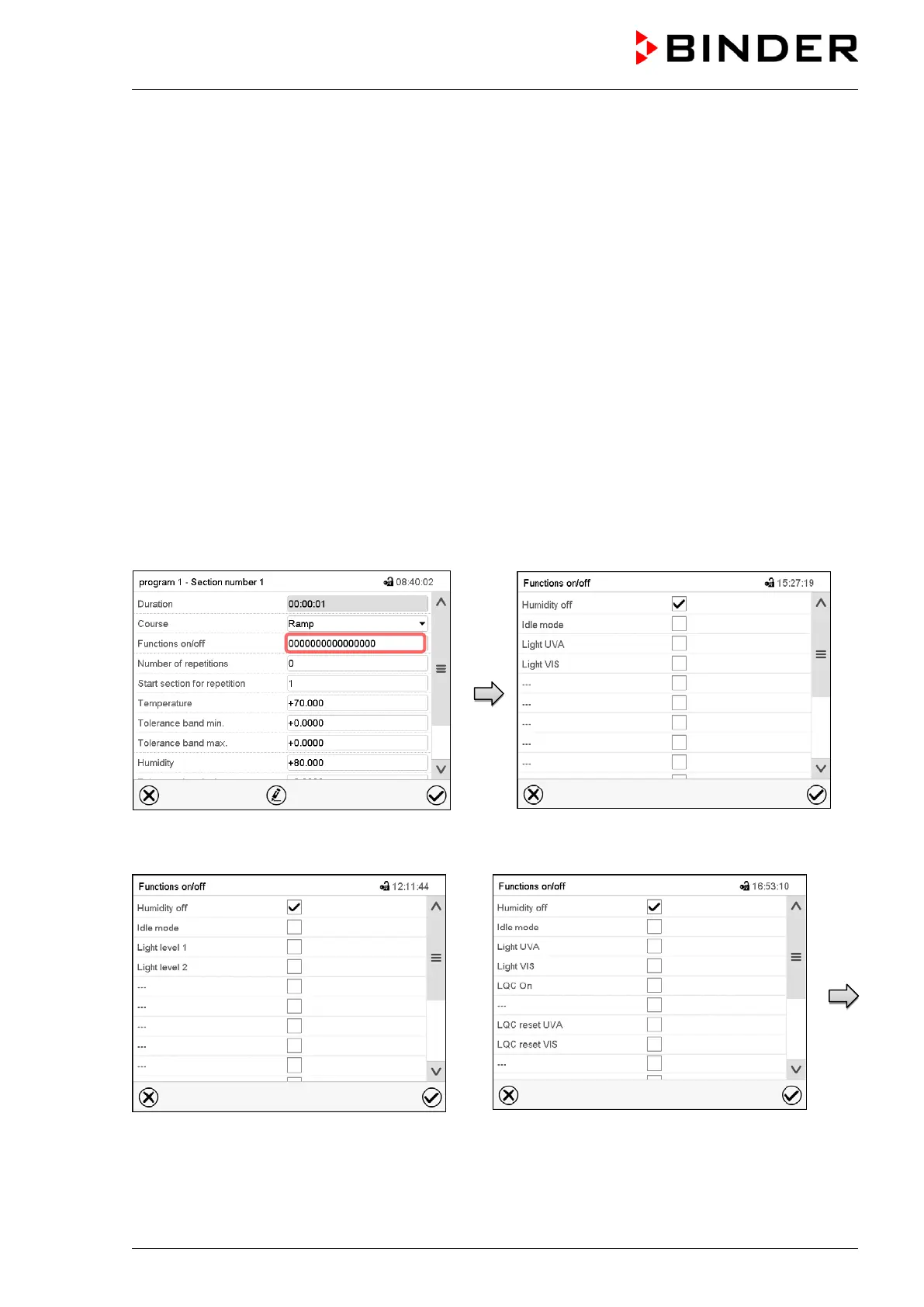 • KBF P / KBF LQC: Operation line “Light UVA” serves to turn on/off the BINDER Synergy Light fluores-
