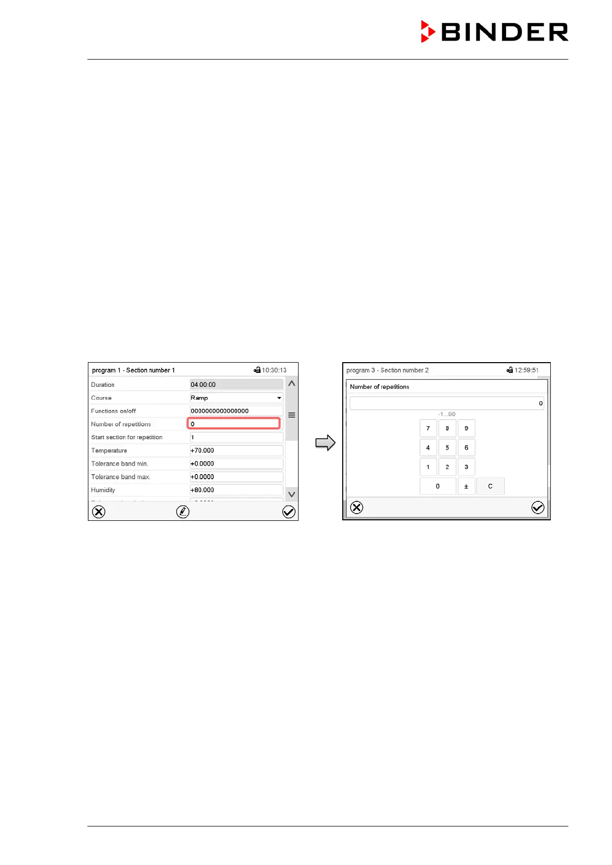 Entry menu “Number of repetitions”.