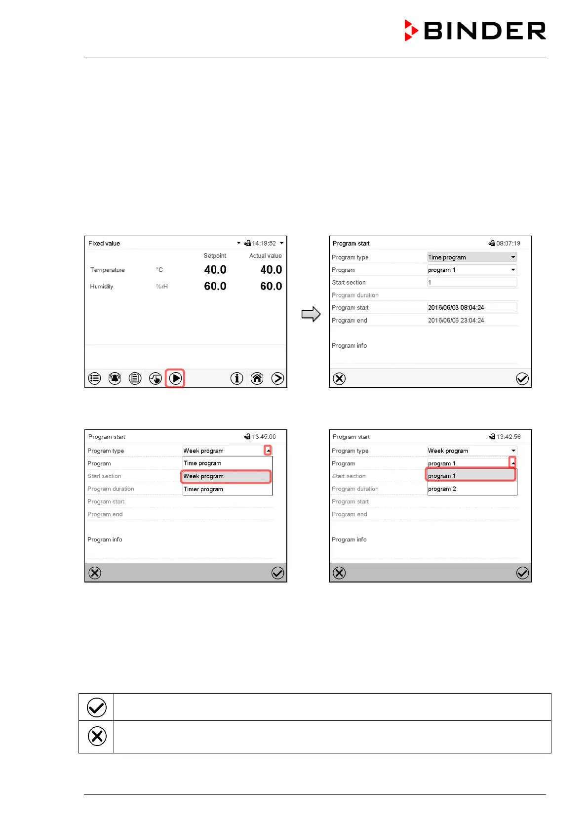 There are no further settings available in the “Program start” menu for week programs, as they are need-