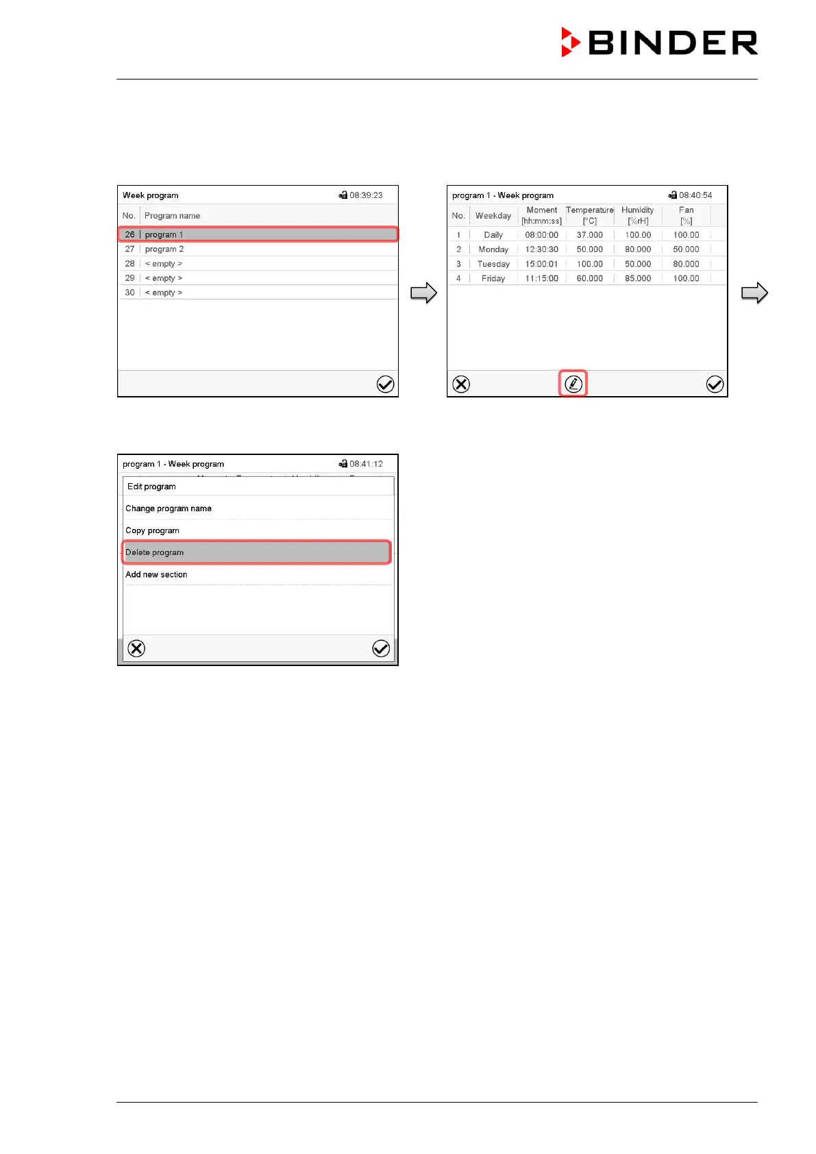 Binder KBF P 240 - Deleting a Week Program
