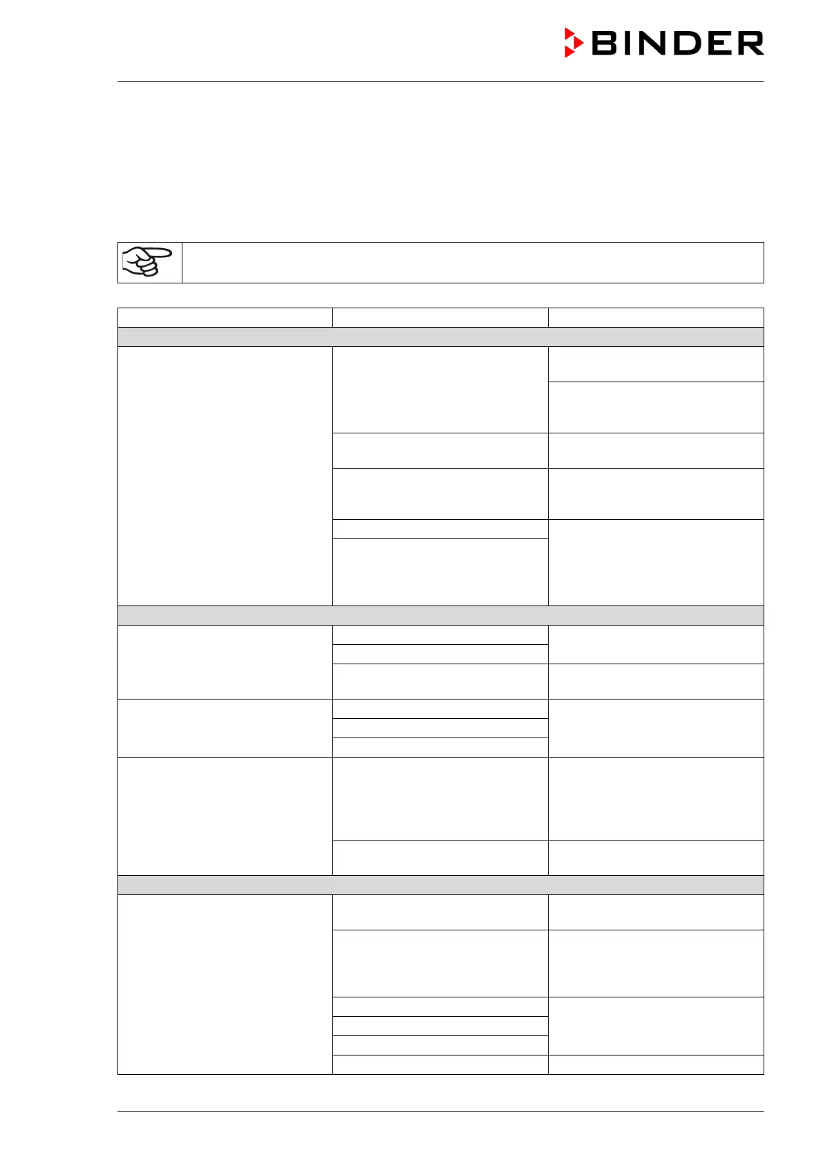 operation and inform BINDER Service. If you are not sure whether there is a technical fault, proceed ac-