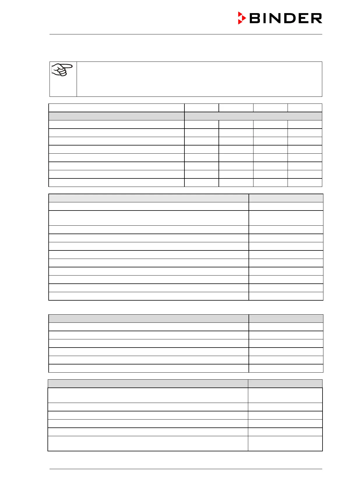 For information on components not listed here, please contact BINDER Service.
