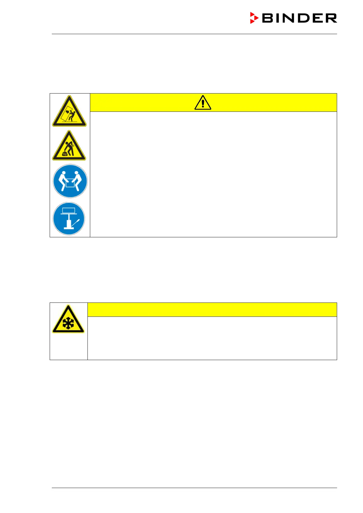 Contact BINDER Service before any transportation below +3 °C / 37.4 °F.