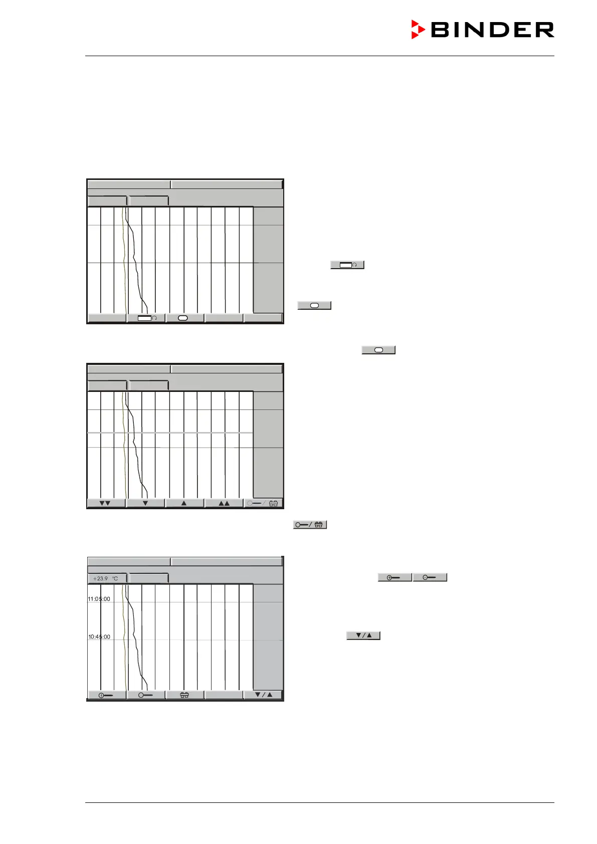 The representation of data imitates a chart recorder and allows recalling any set of measured data at any