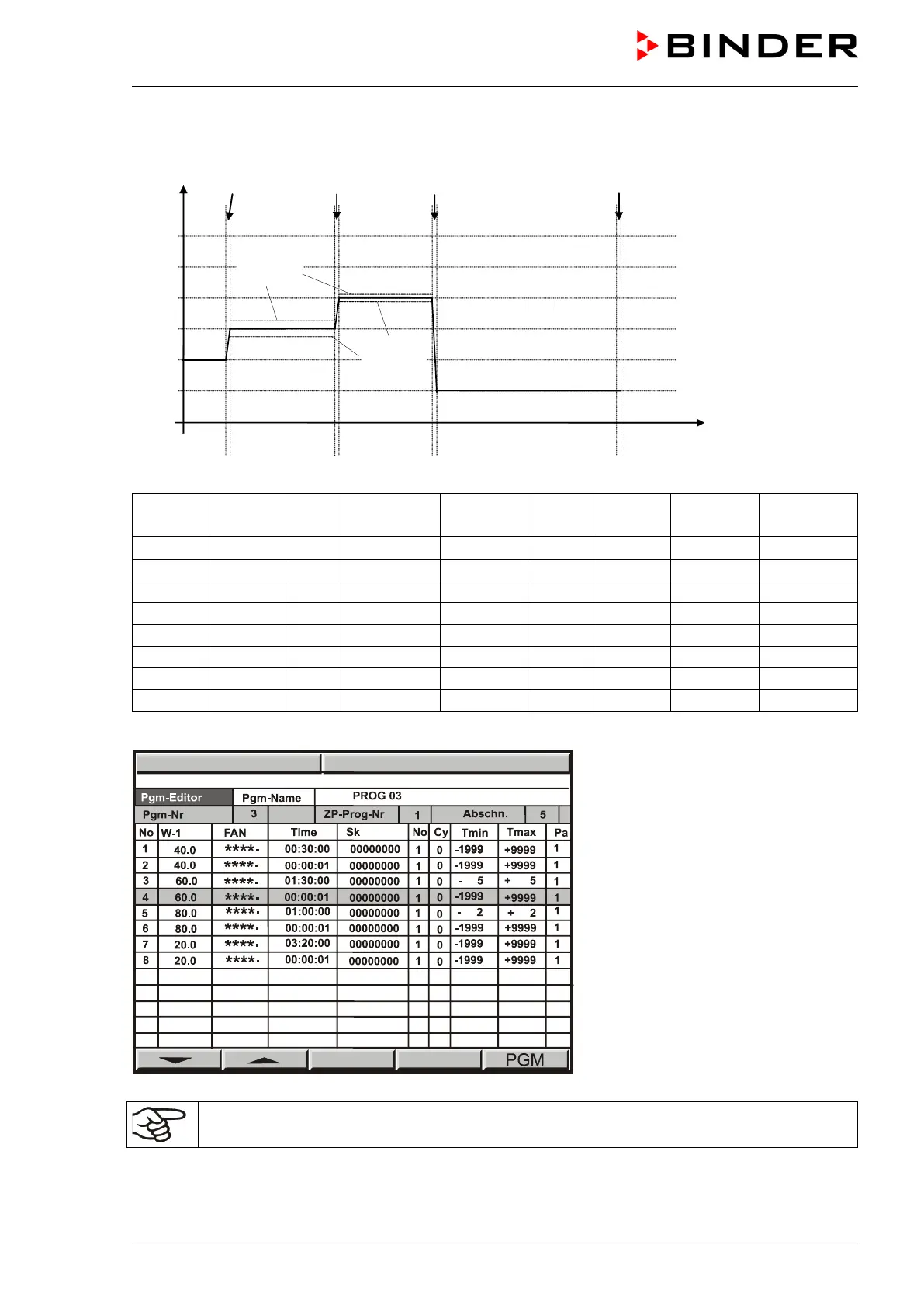 Program entry as “set-point step” (example of a temperature program)