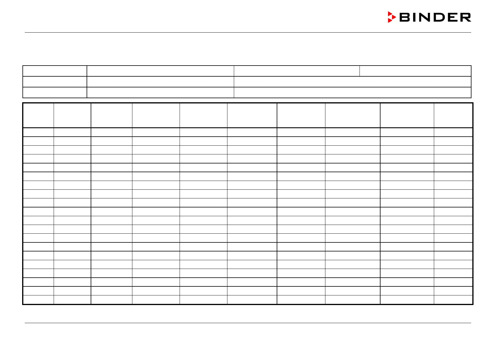 Binder KMF 115 - Program Table Template for Humidity