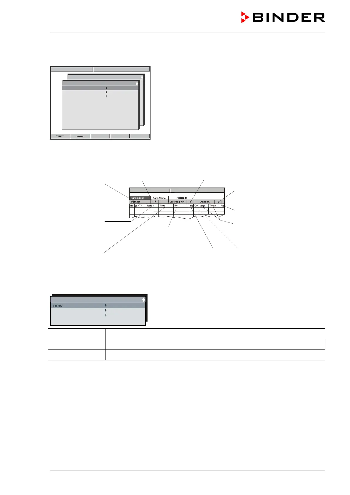 Create as many lines, i.e. program sections, as desired. As a next step, values can be entered into these