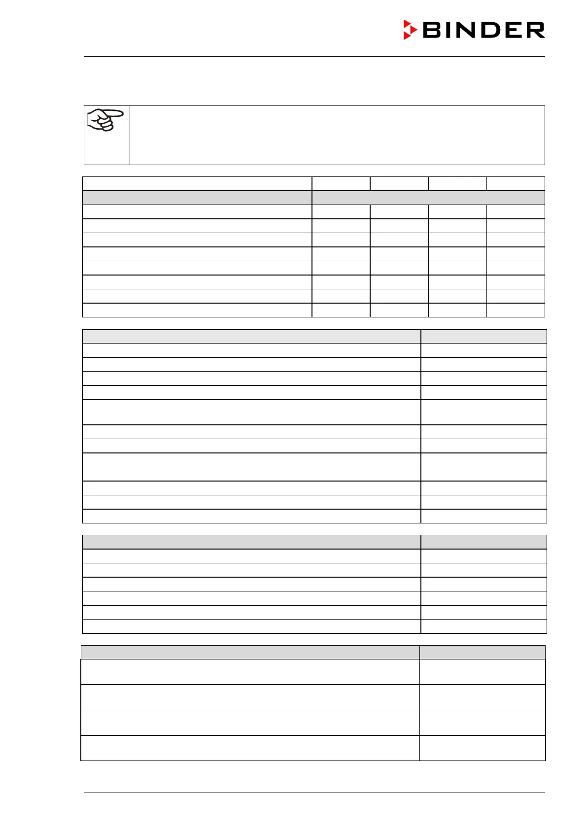 For information on components not listed here, please contact BINDER Service.