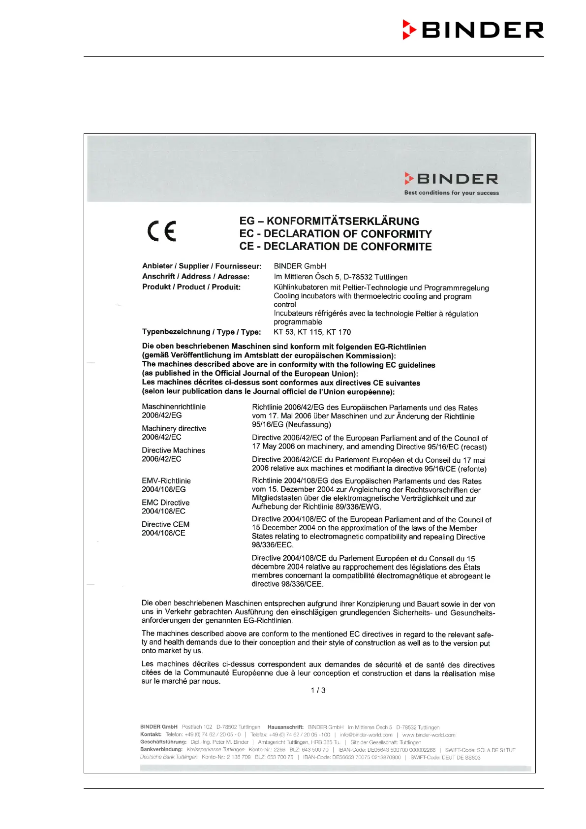 Binder KT 53 - Certificates; EC Declaration of Conformity