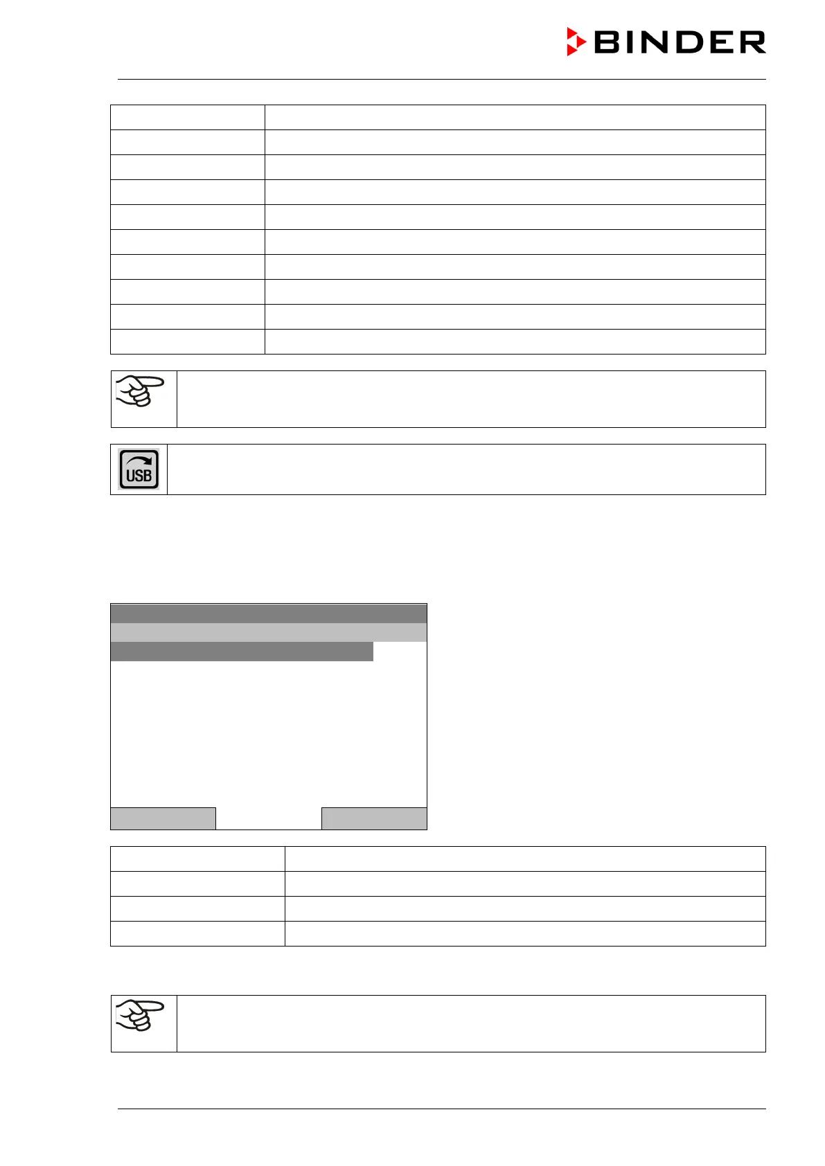 If no USB device has been connected, the message “No USB device found” is displayed. It