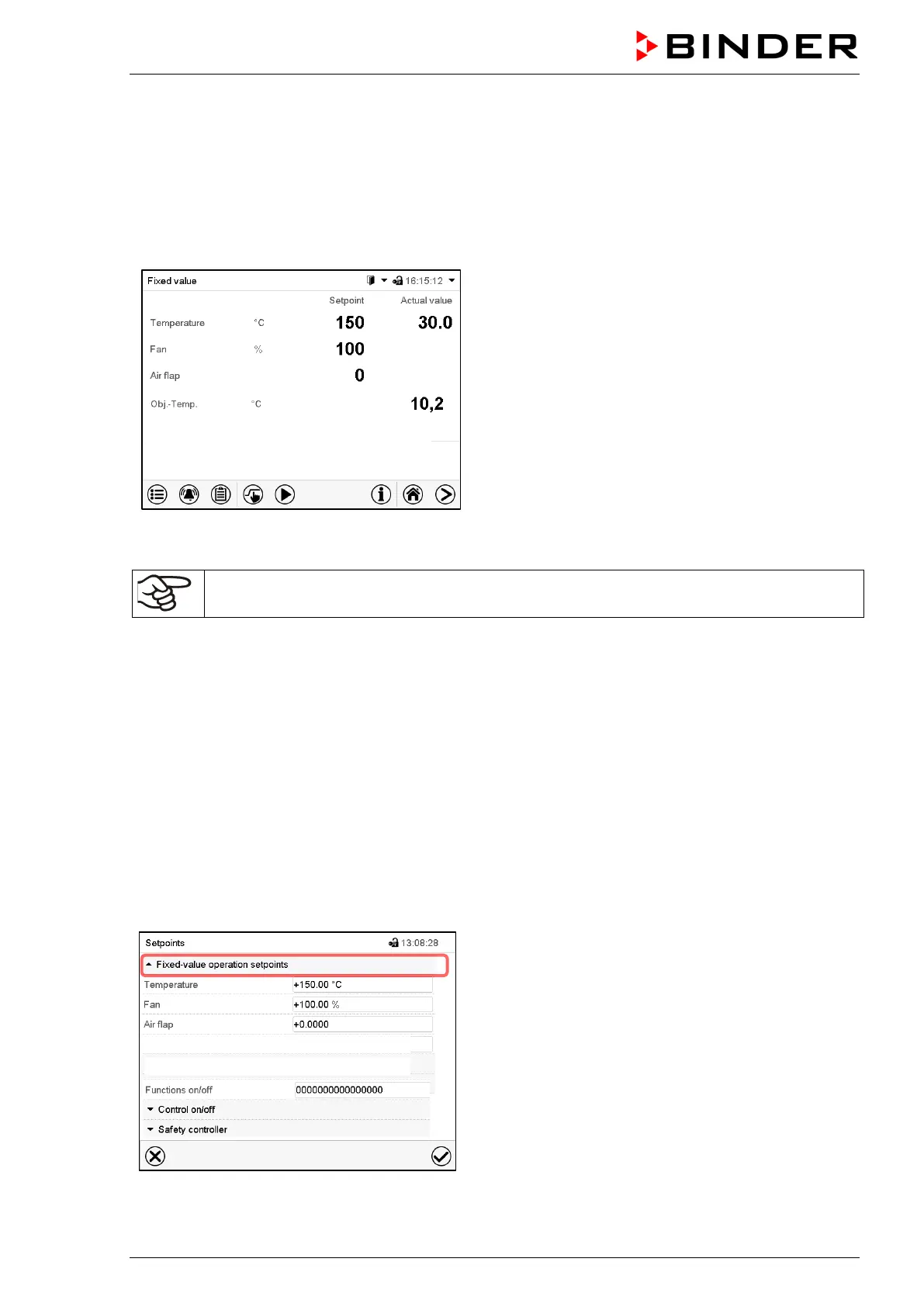 “Setpoints” menu with object temperature control op-