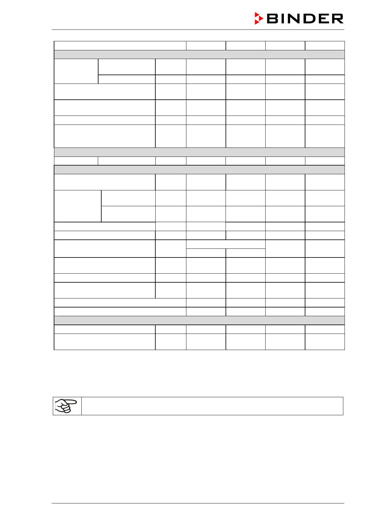 determined in accordance to BINDER Factory Standard Part 2:2015 and DIN 12880:2007.
