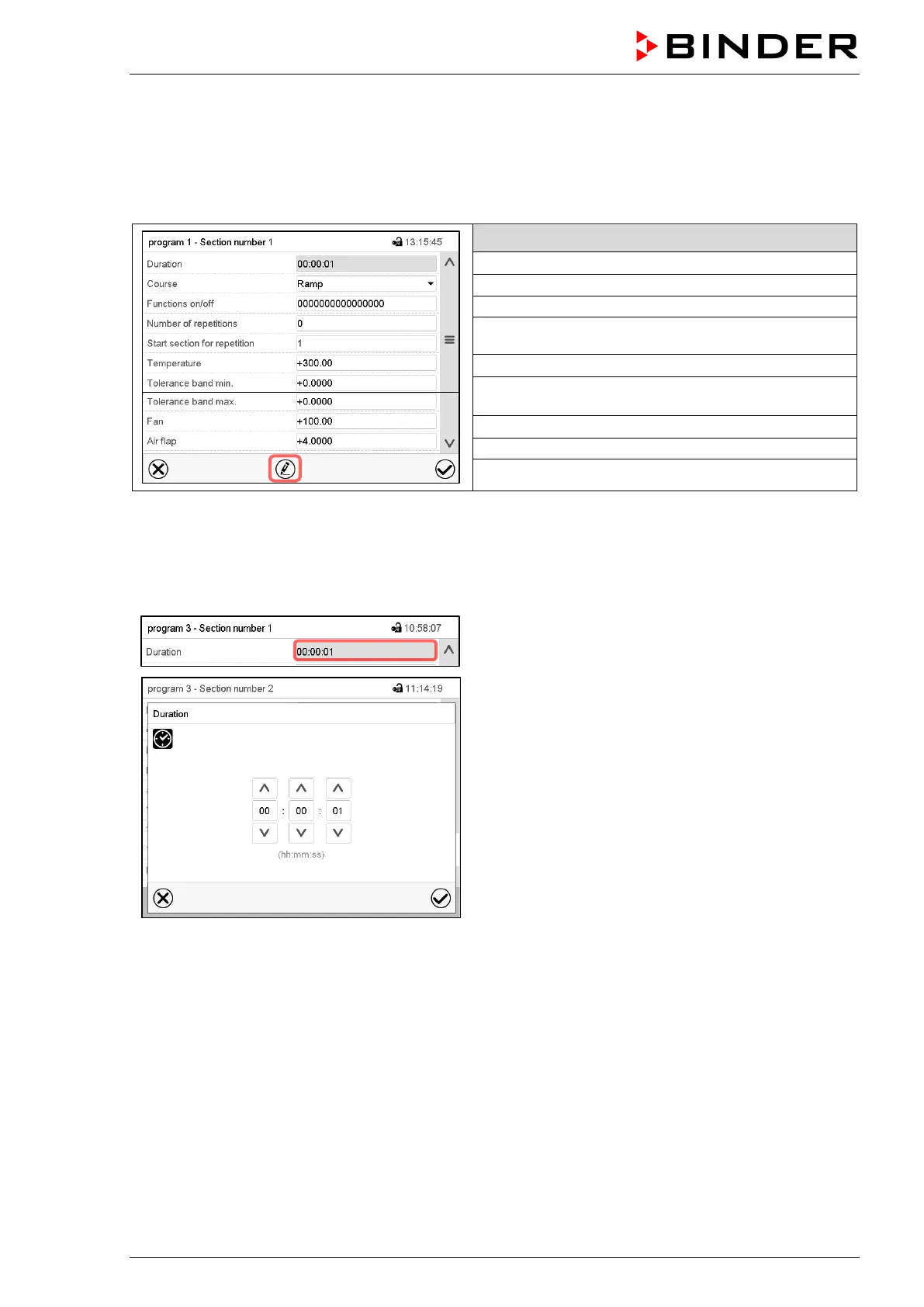 The section view gives access to all parameters of a program section. You can enter or modify the values.