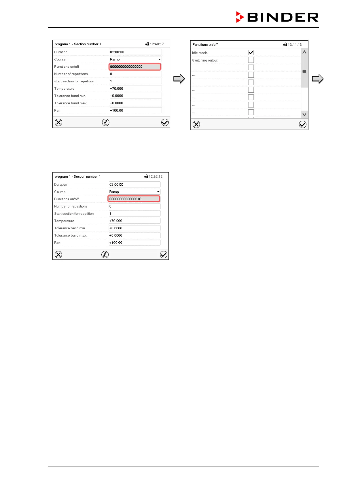 Confirm entry with Confirm icon. The controller returns to the section view.