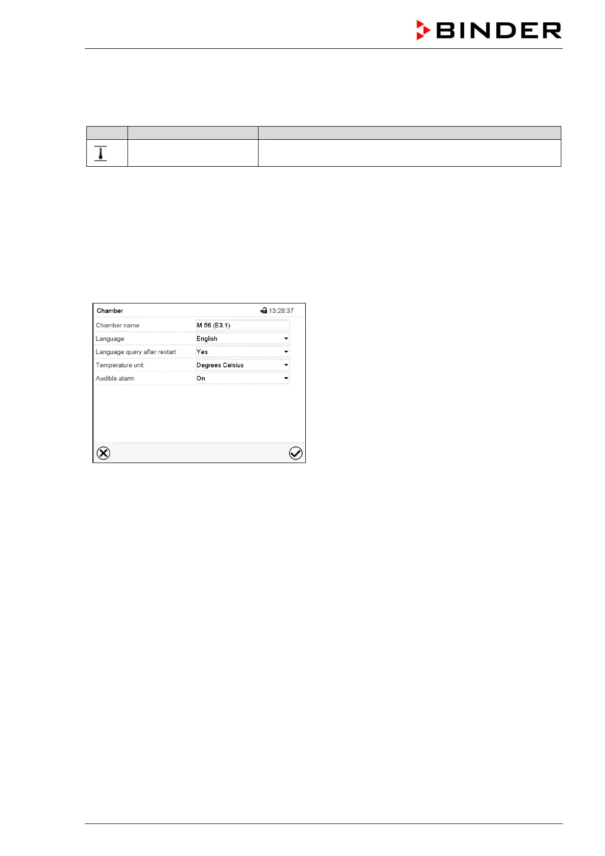 After completing the settings, press the Confirm icon to take over the entries and exit the menu, or press
