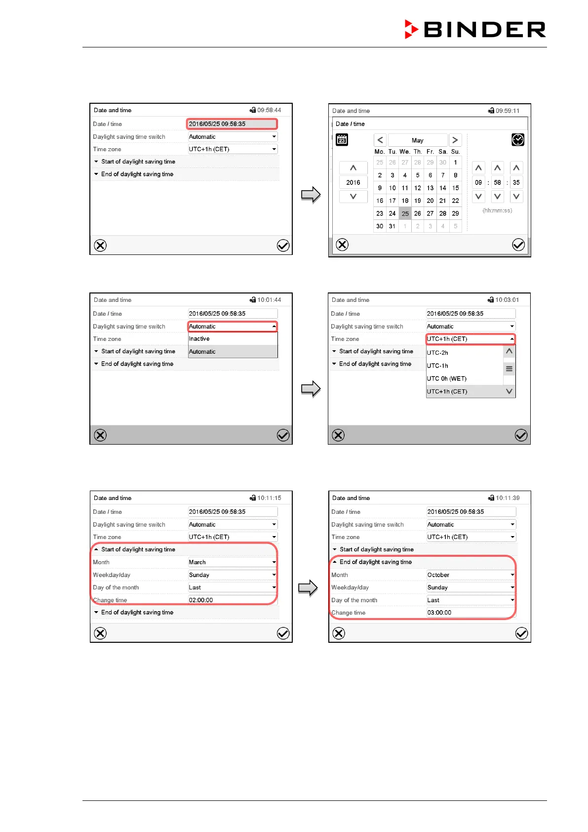 Enter date and time and press the Confirm icon.