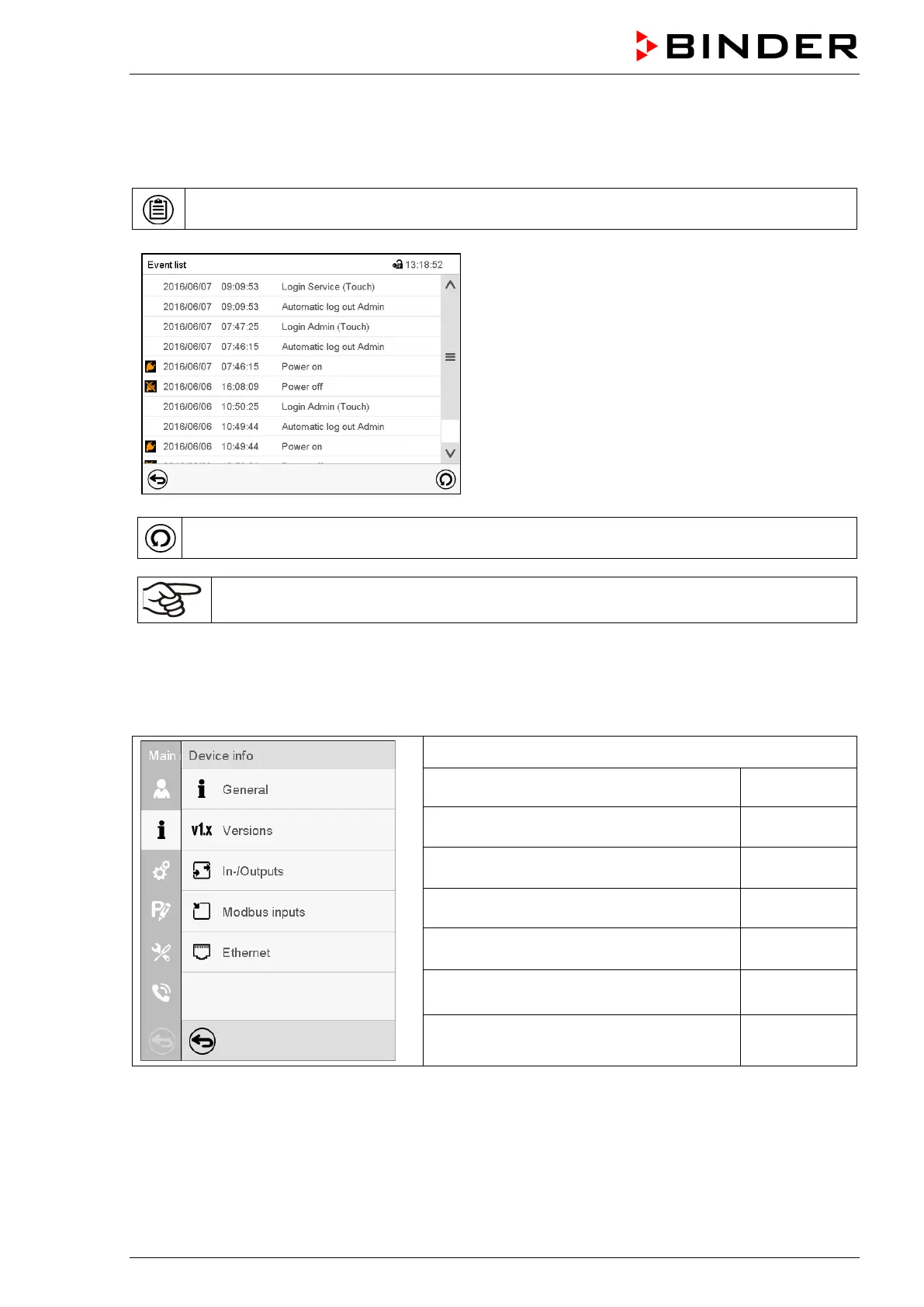 The “Event list” displays status information and errors of the current day. It enables to view the last 100