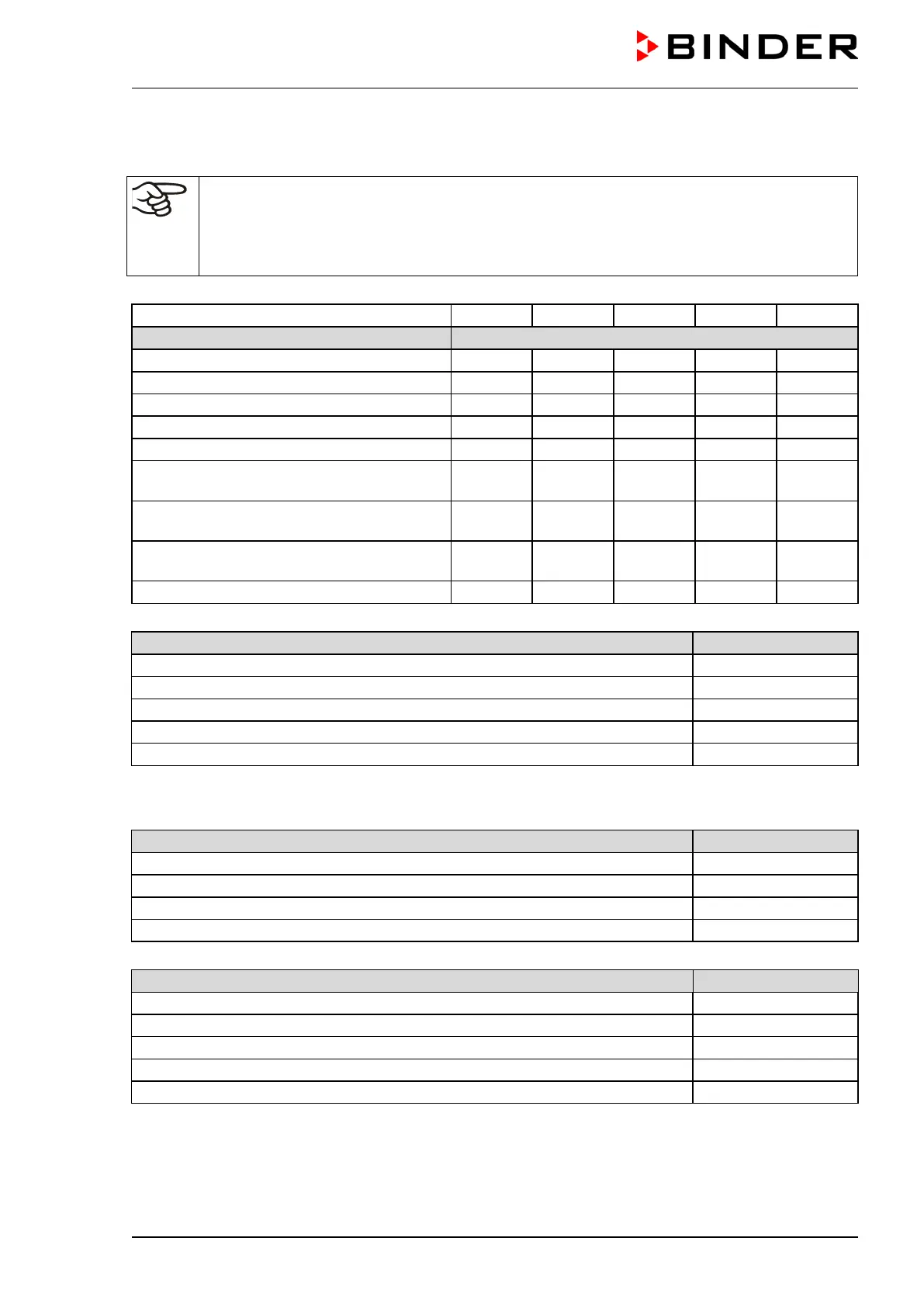 For information on components not listed here, please contact BINDER Service.