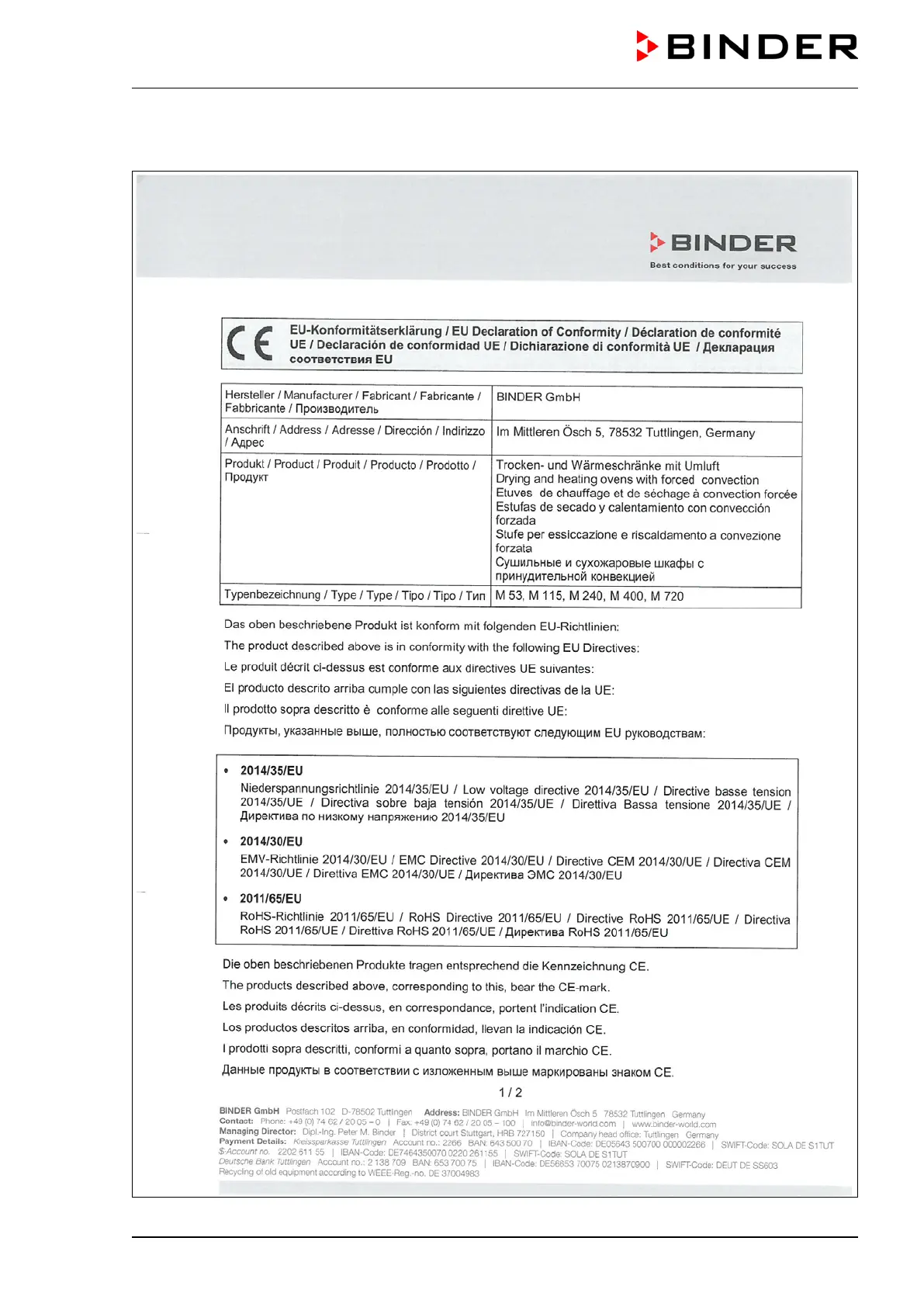 Binder M Series - 16 Eu Declaration of Conformity
