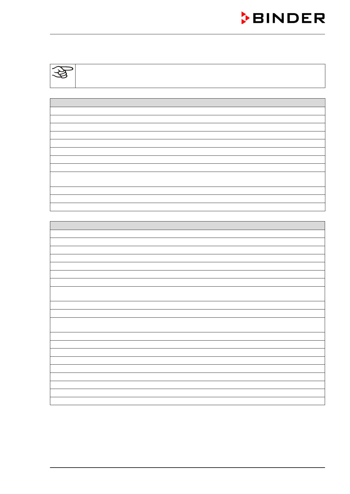 ries / components from third-party suppliers authorized by BINDER. The user is responsible for