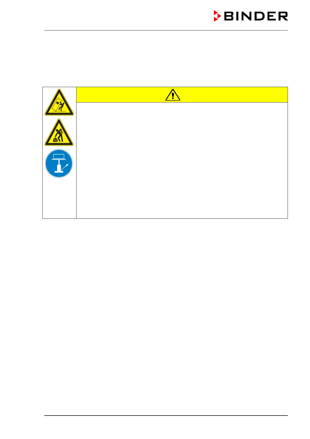 ∅ Do NOT lift or transport the chamber using the door, the handle or at the lower hous-