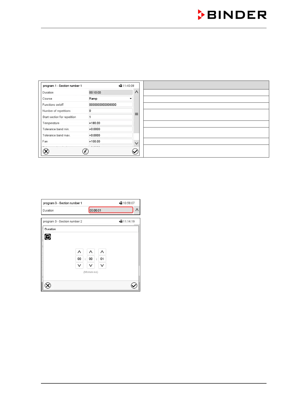 Enter the desired section duration with the arrow keys