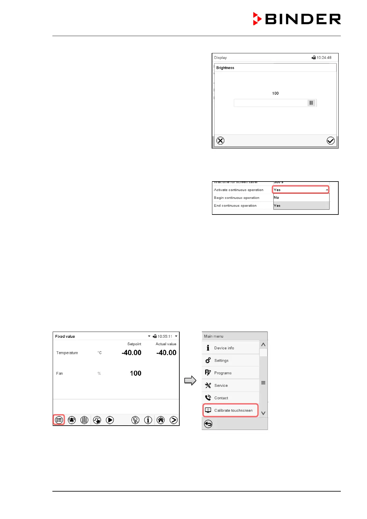 Select “Calibrate touchscreen” and follow the instructions on the display.