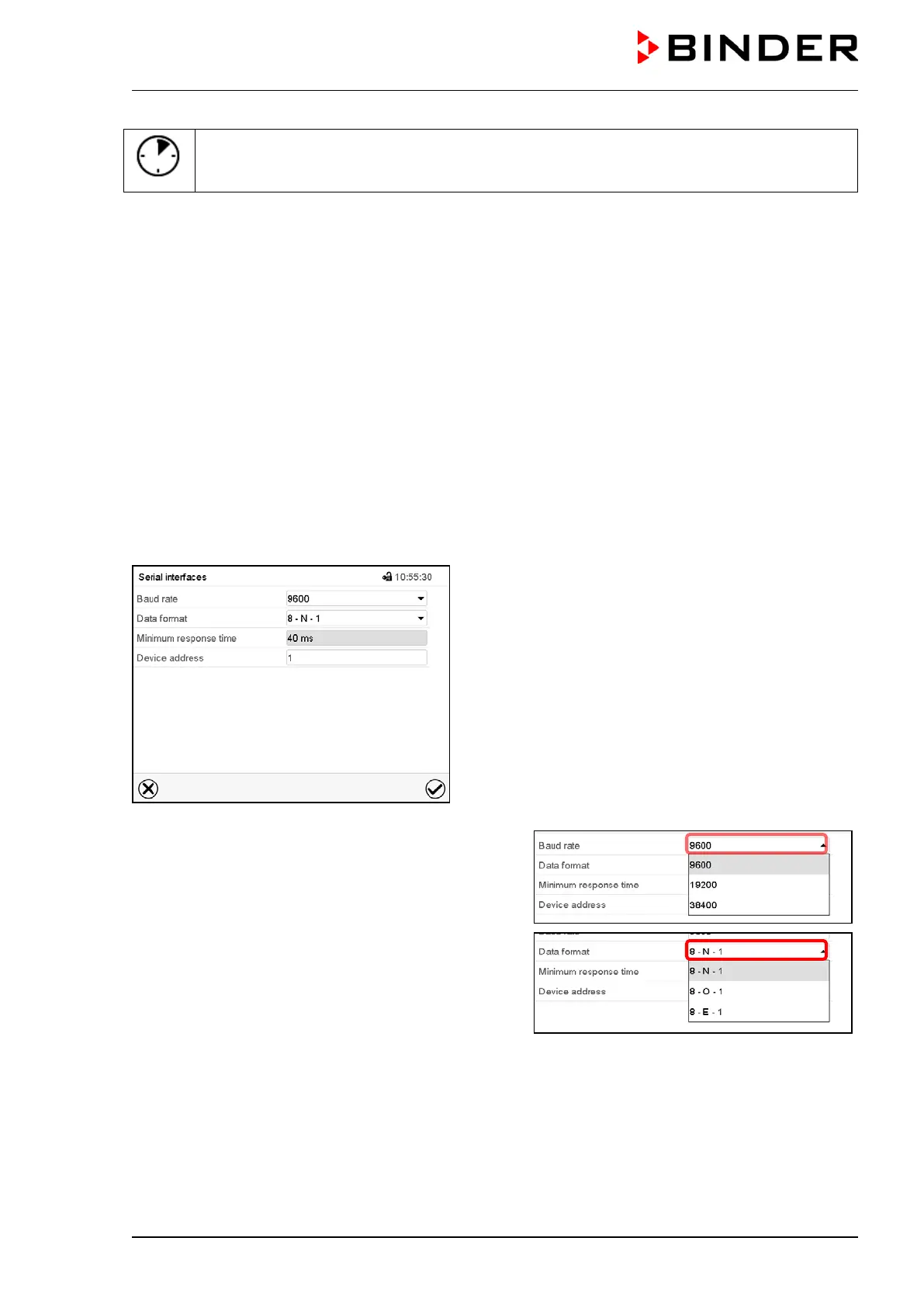 • Select the desired setting in the field “Baud rate”.