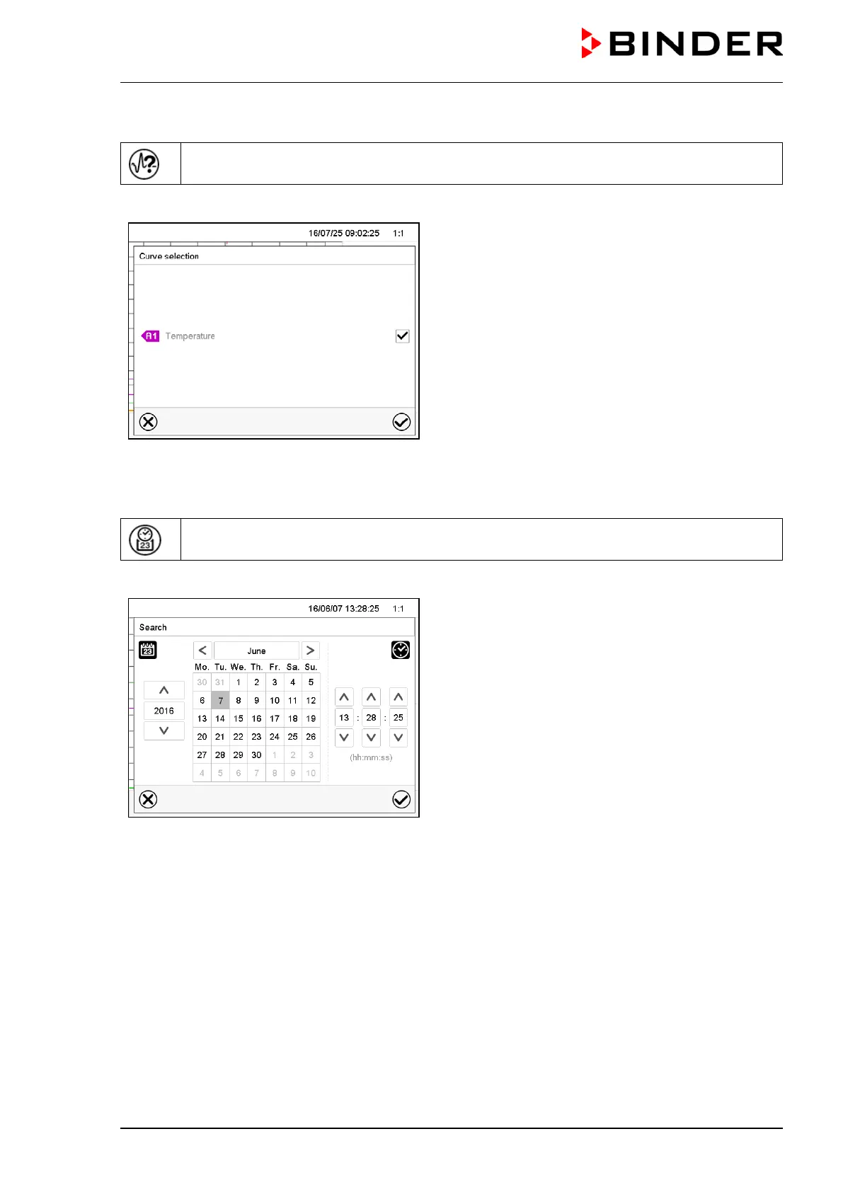 Press the Curve selection icon to access the “Curve selection” submenu.