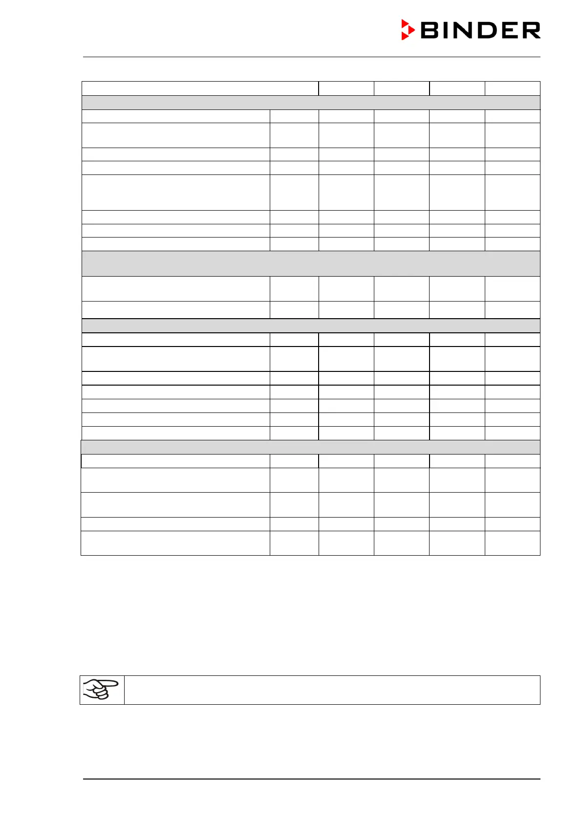 determined in accordance to BINDER Factory Standard Part 2:2015 and DIN 12880:2007.