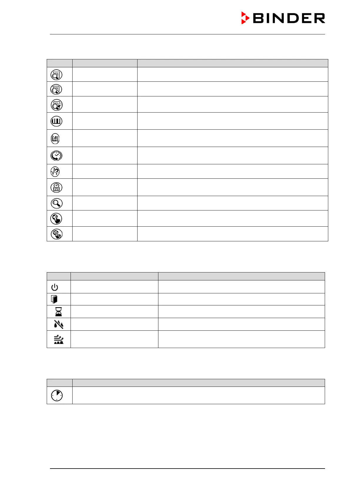 Information icons referring to chamber conditions