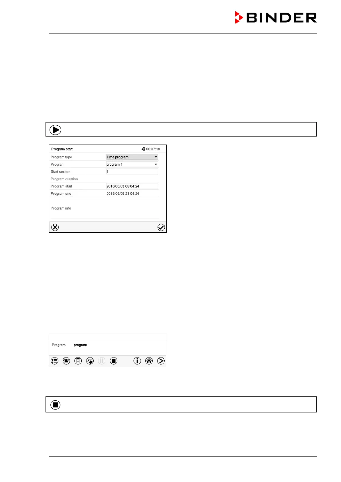 A confirmation prompt is displayed. Press the Confirm icon to confirm that the program shall really be