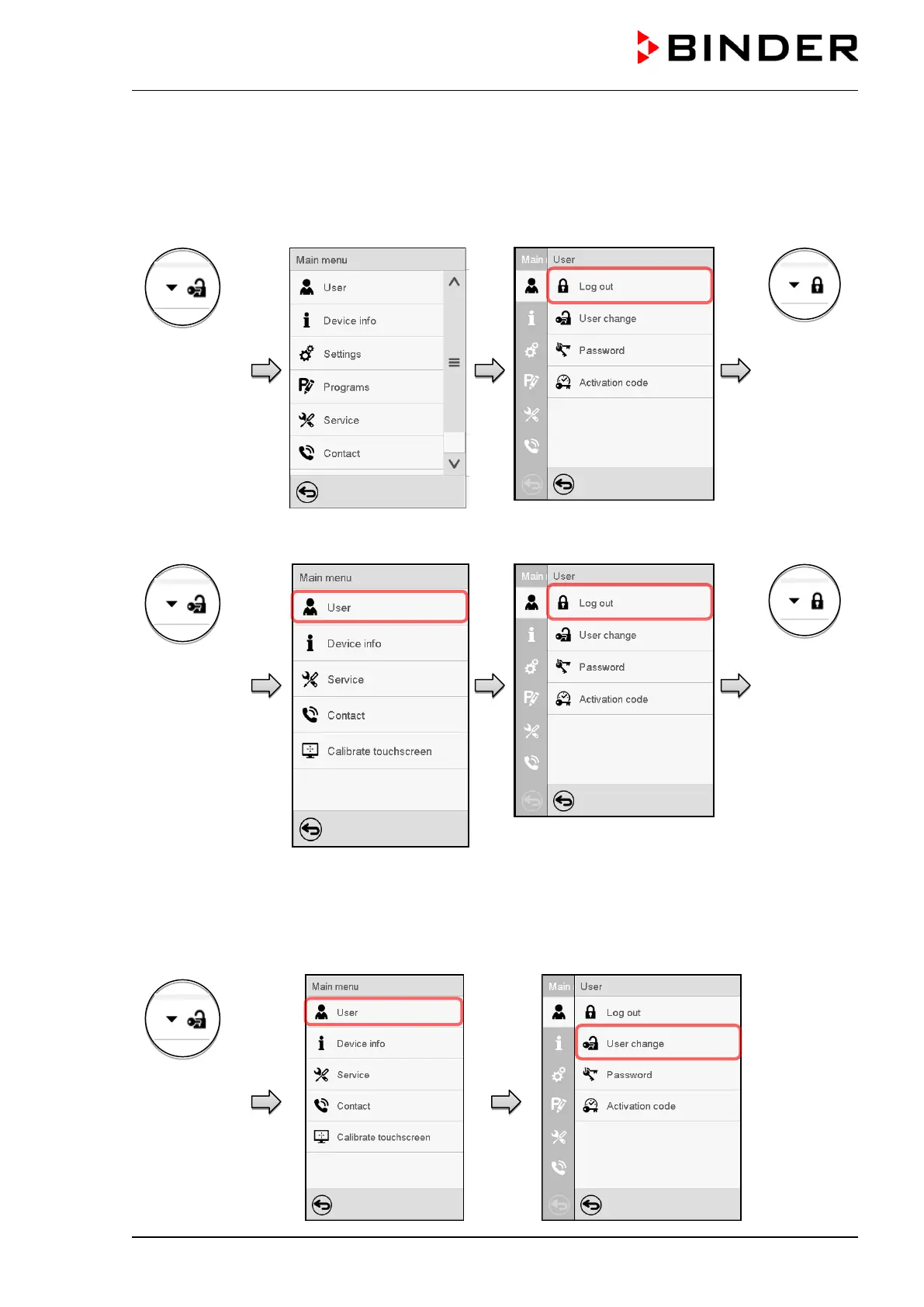 Path: Main menu > User > Log out