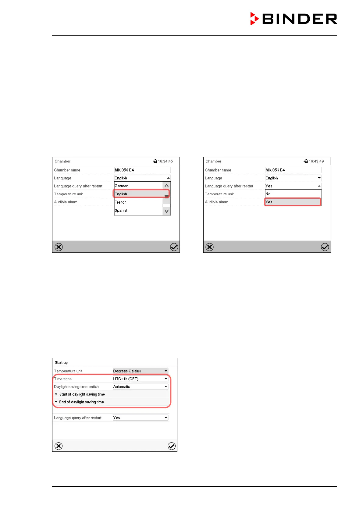 “Service” or “Admin” authorization level. It serves to enter date and time, select the language for the con-