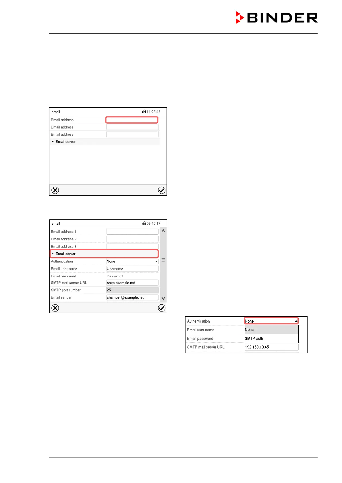 • Select the field “Email user name” and enter the desired user name. Confirm entry with Confirm icon.