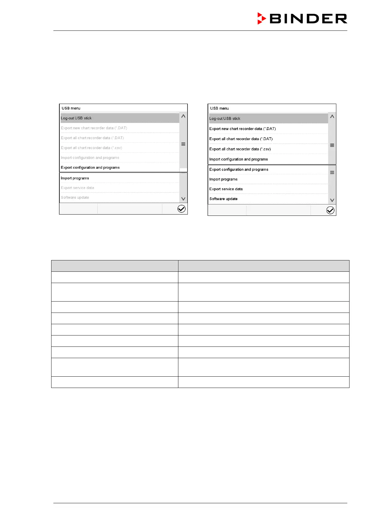 14.6 USB menu: Data transfer via USB interface