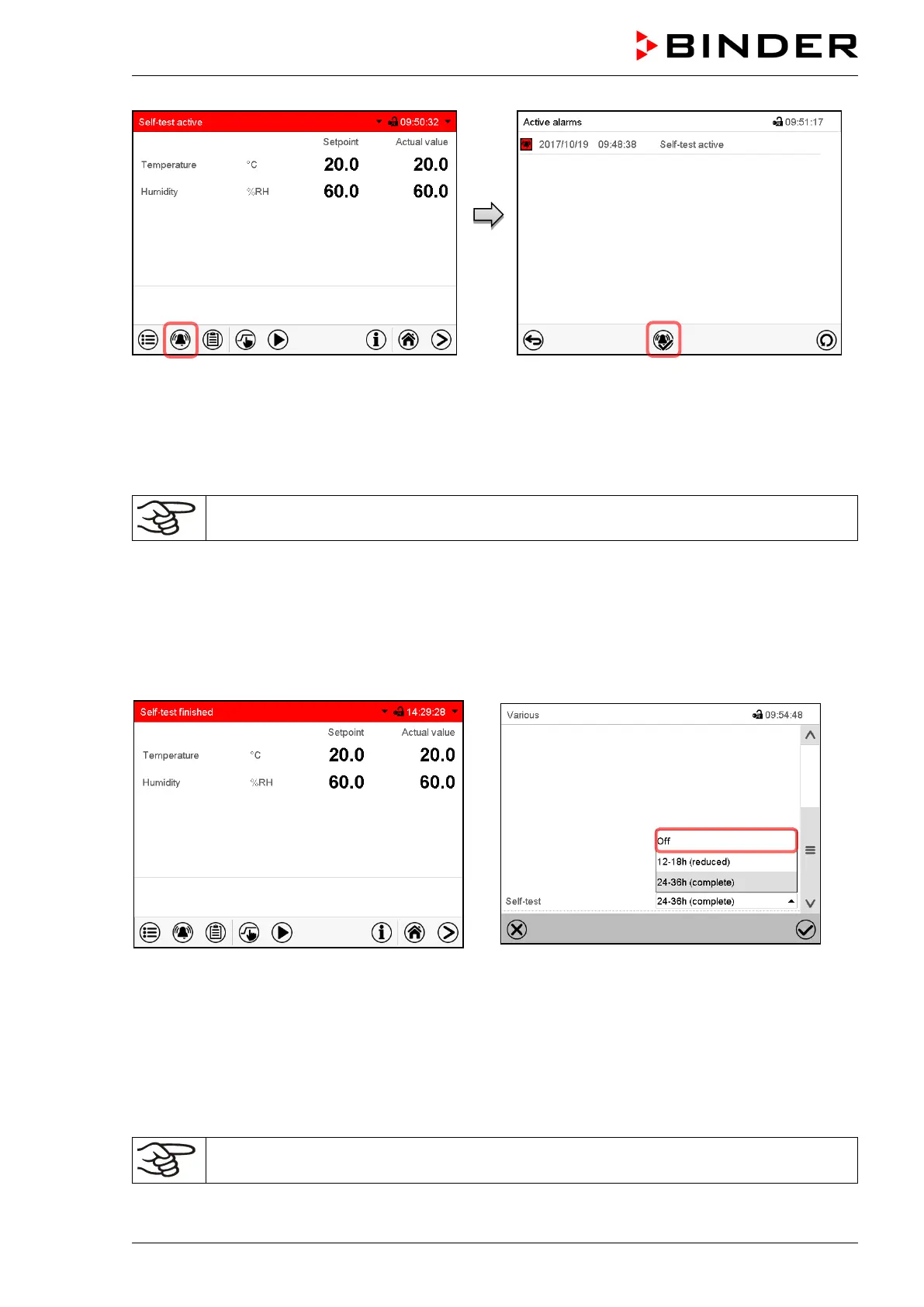 vated with the alarm message “Self-test active”.