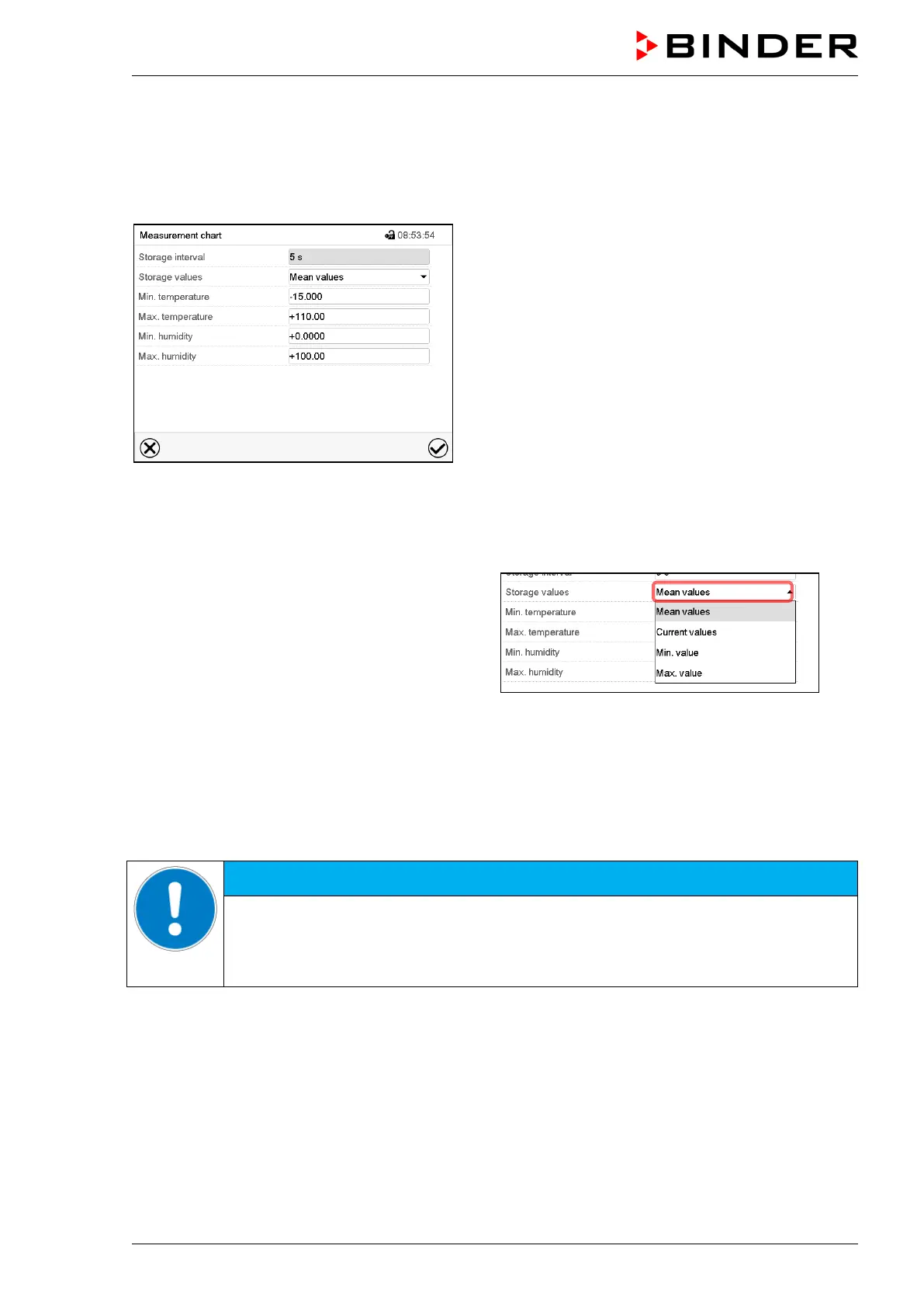 • Select the field “Storage interval” and enter the desired storage interval. Confirm entry with Confirm