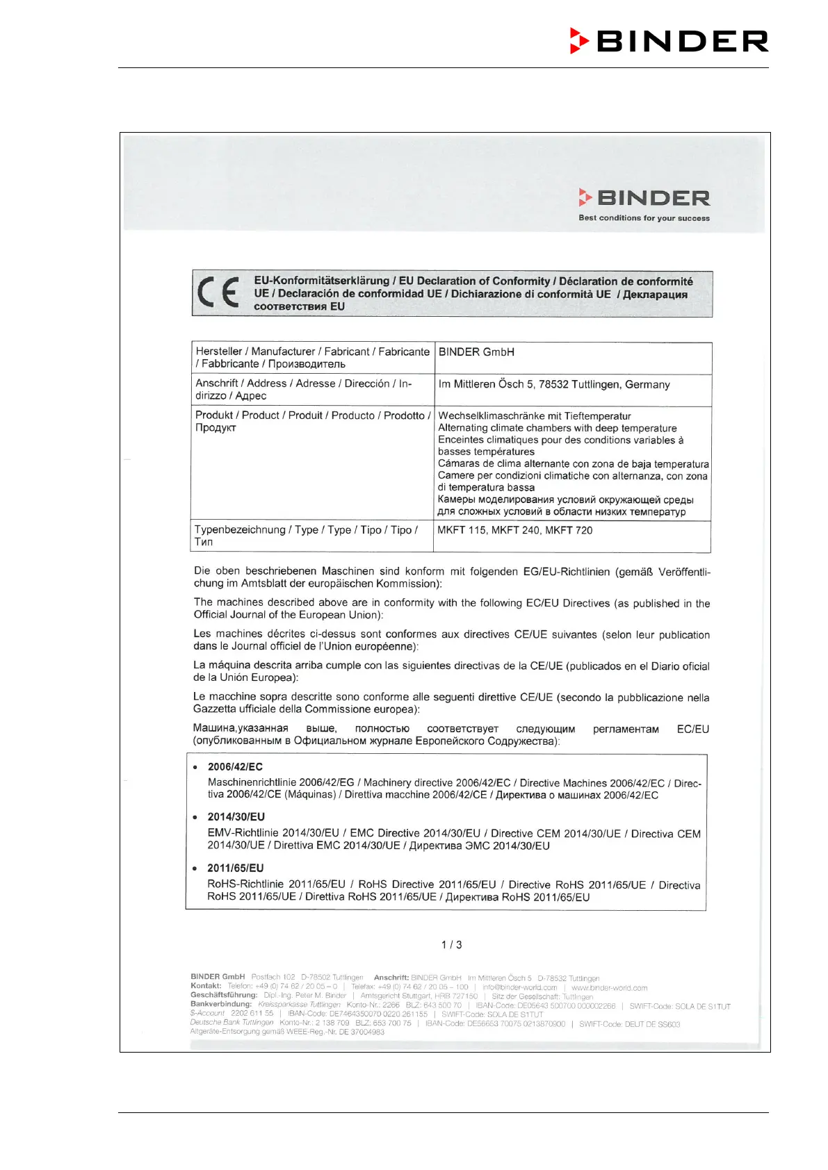 Binder MKF 115 - EU Declaration of Conformity for MKFT
