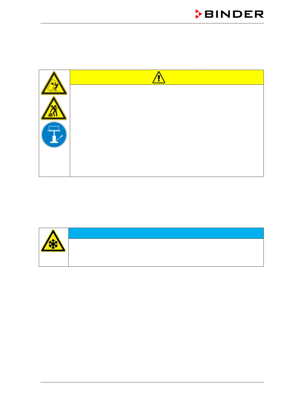 Contact BINDER Service before any transportation below +3 °C / 37.4 °F.