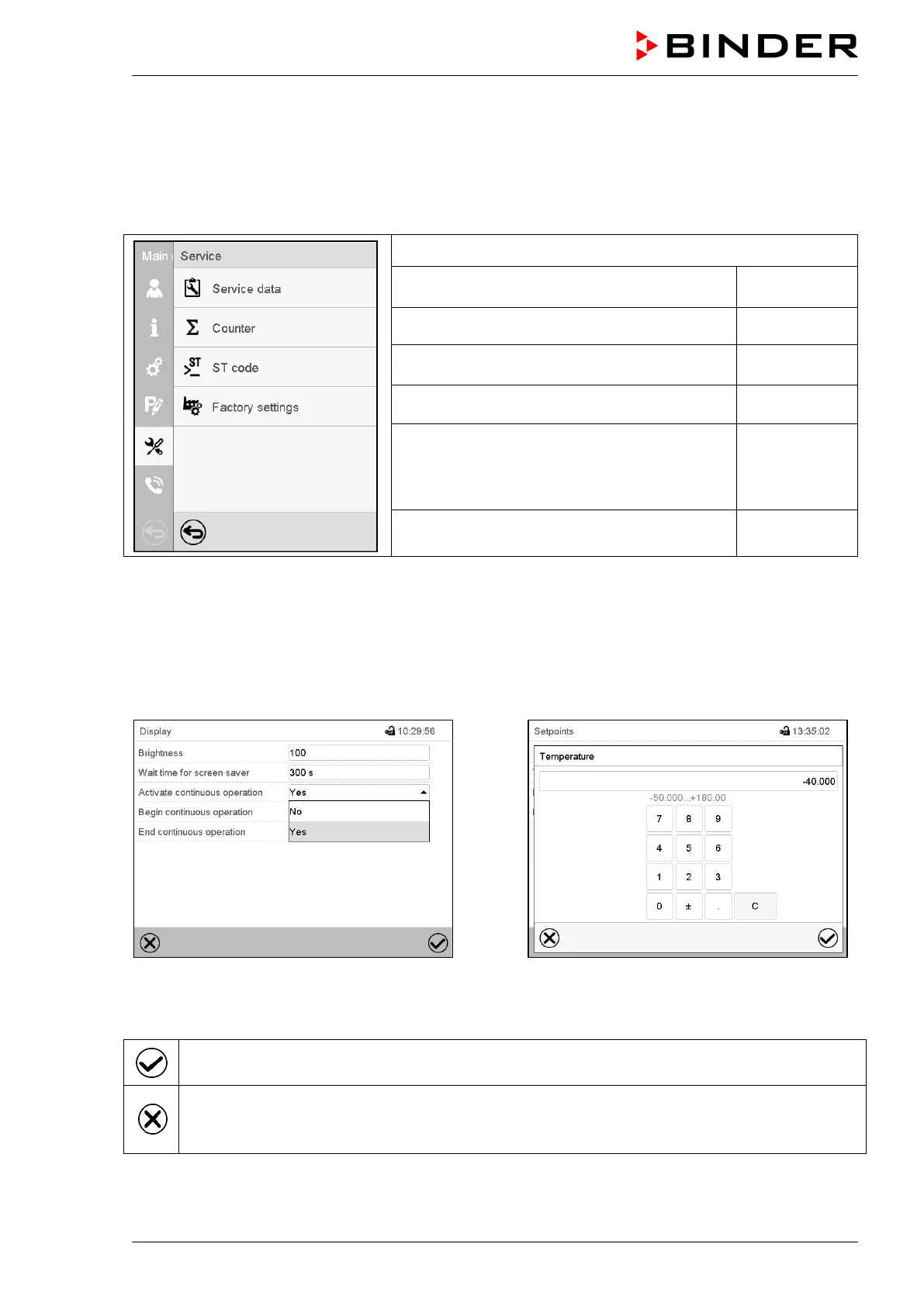 Press the Confirm icon to take over the entries and exit the menu or continue the menu se-