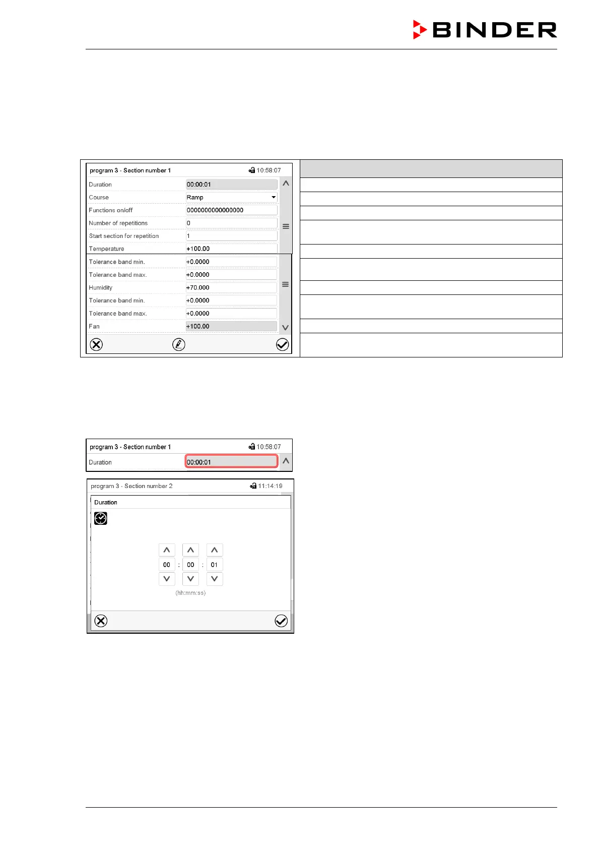 The section view gives access to all parameters of a program section. You can enter or modify the val-