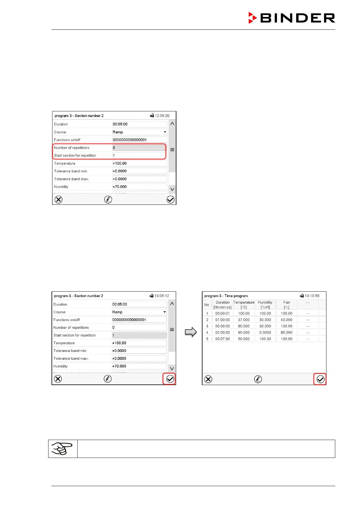 To save the programming it is absolutely required to press the Confirm icon. Otherwise all