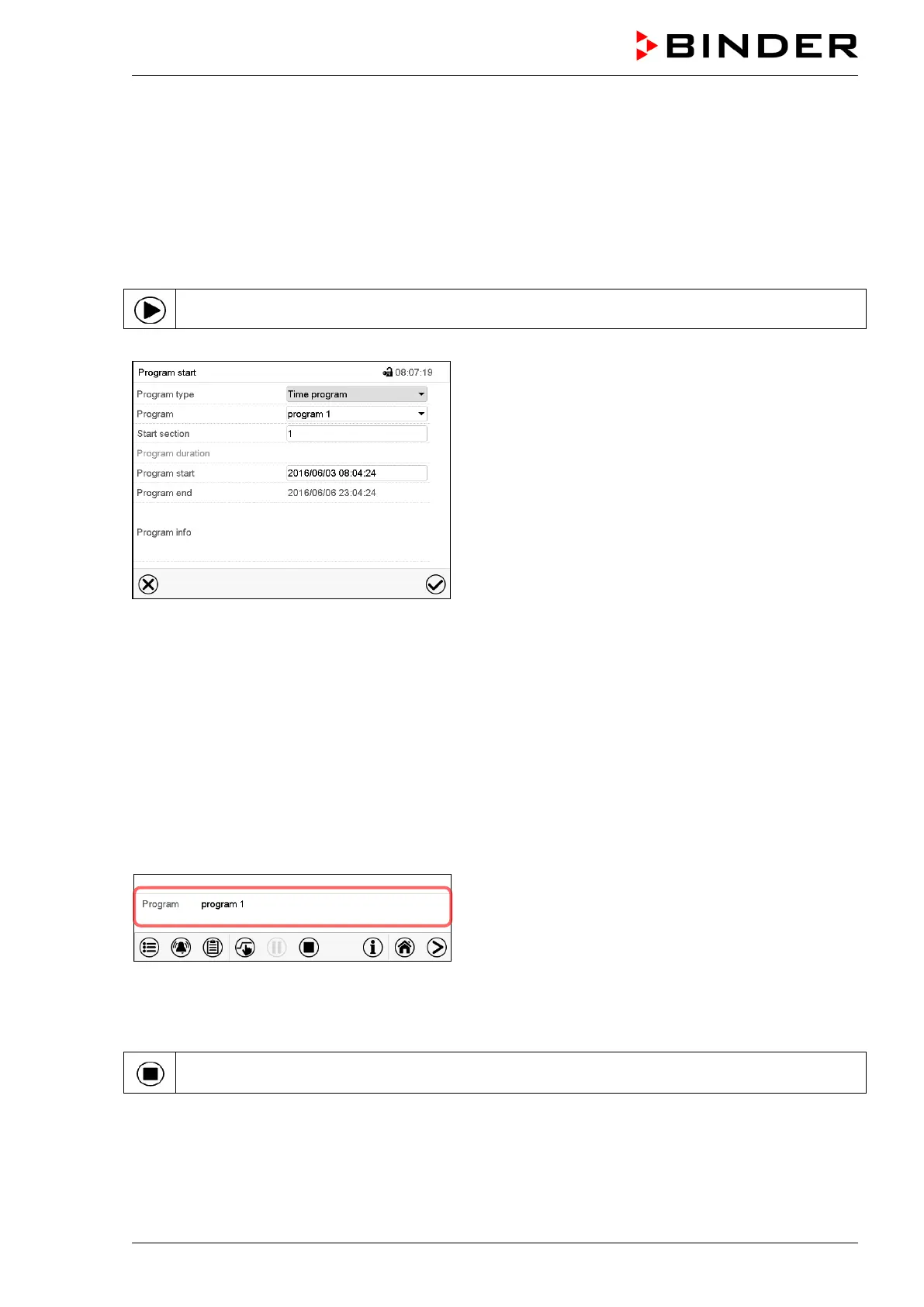 A confirmation prompt is displayed. Press the Confirm icon to confirm that the program shall really be
