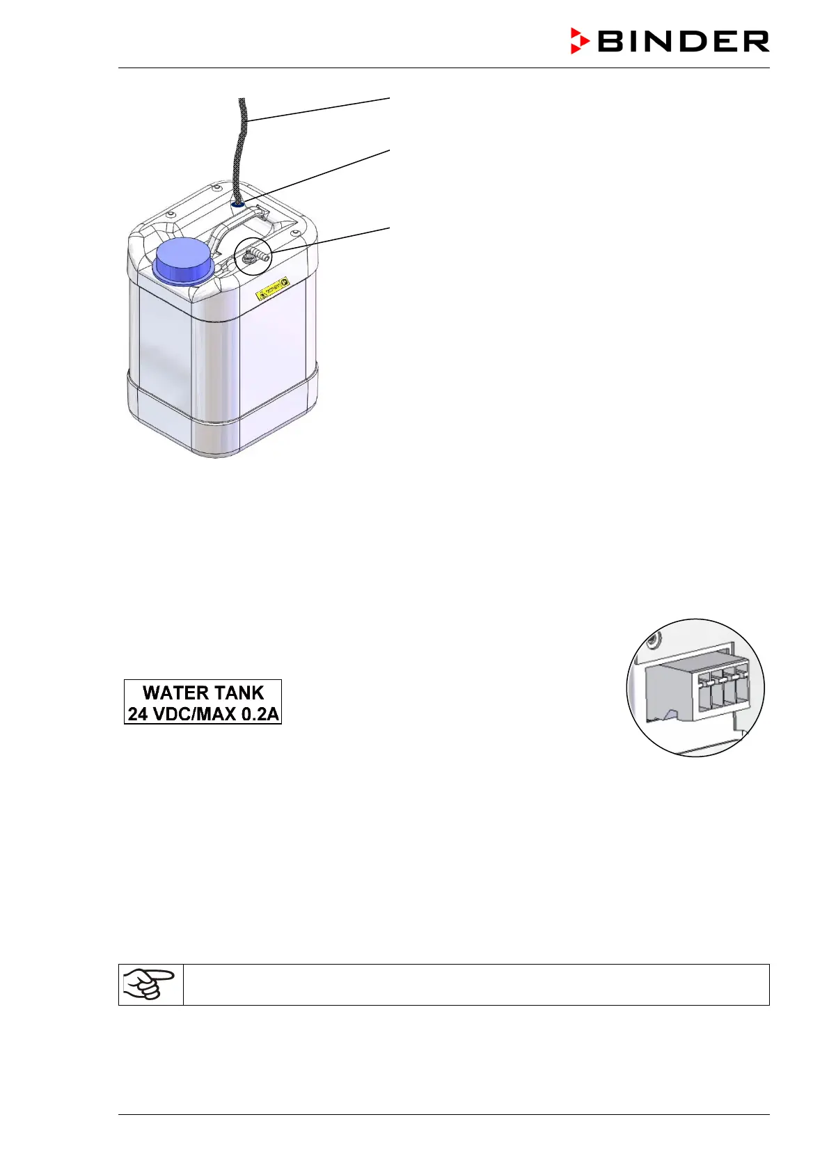 the freshwater can. The end of the hose must be placed at the bottom of the can.