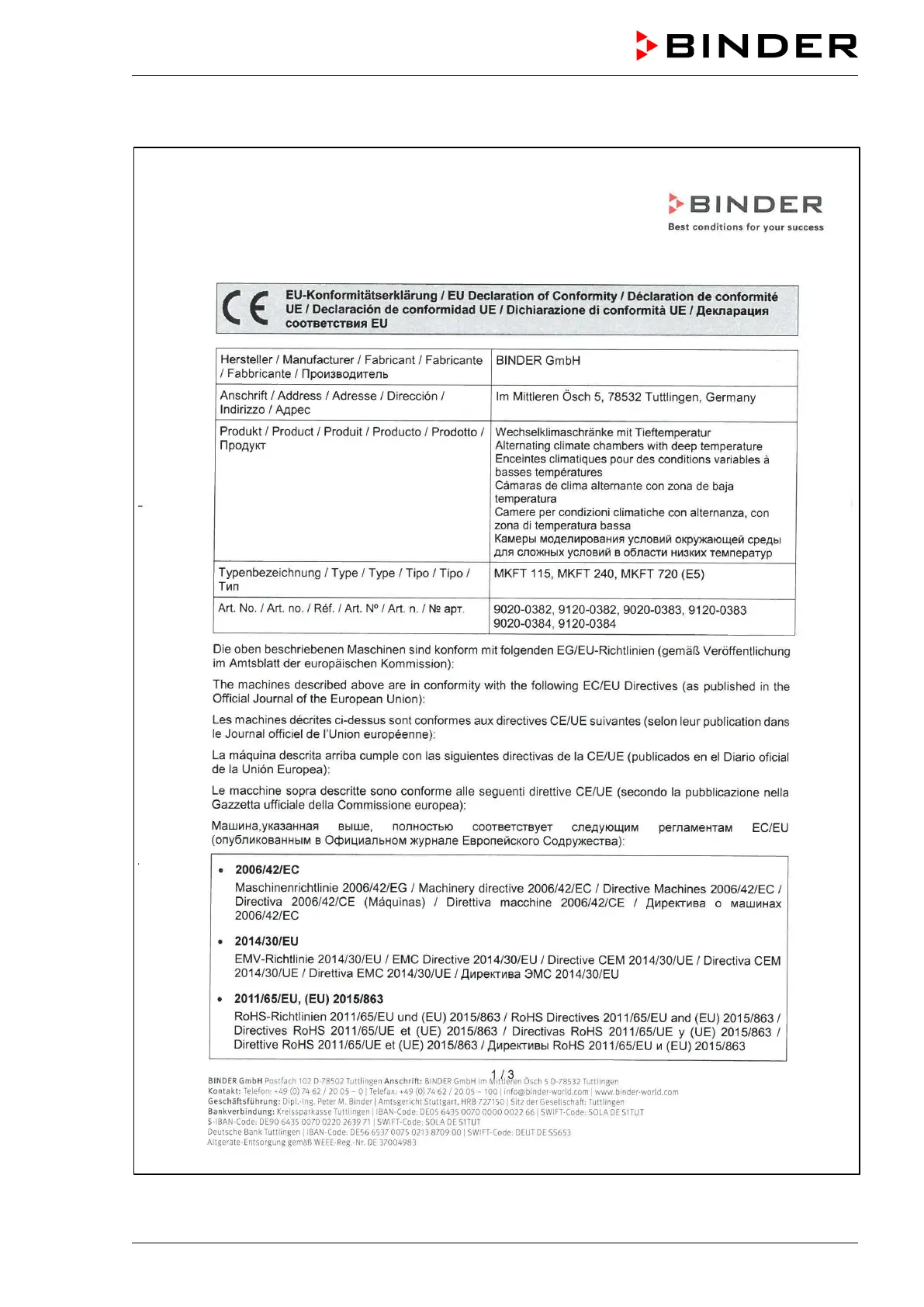 Binder MKF 400 - EU Declaration of Conformity for MKFT